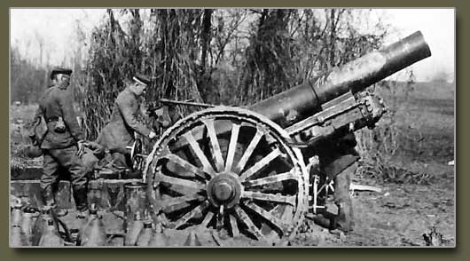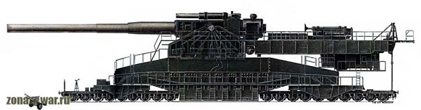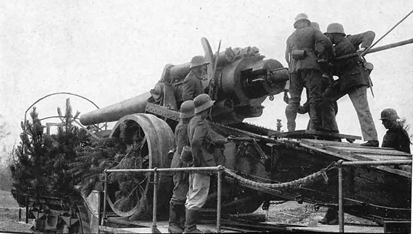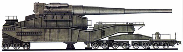 В конце Первой мировой войны германская армия с успехом использовала 280-мм морские пушки, установленные на железнодорожных транспортерах.